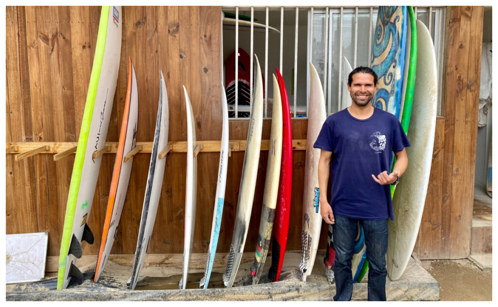 La pasión, las ganas y la necesidad llevaron a Matías a querer aprender a reparar sus propias tablas de surf.