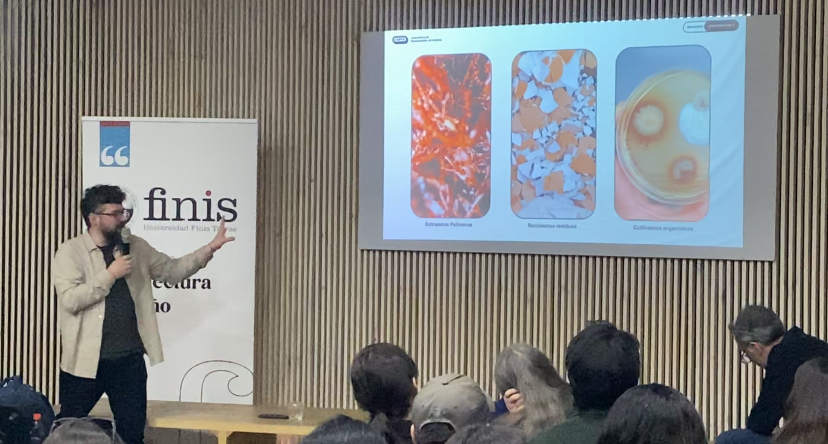El arquitecto abordó el desafío que existe en torno a esta materia, que inicia con el cuestionamiento de los materiales que se utilizan actualmente, se puede dar a conocer una forma de aportar con el medio ambiente, mostrando cómo este tipo de instituciones se enfocan en generar, investigar y experimentar en prototipos de biomateriales, utilizando materiales sostenibles para reducir el impacto ambiental.